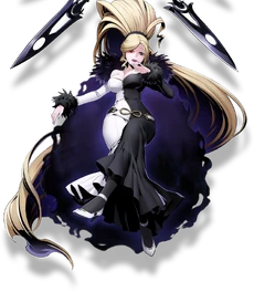 An extravagant diva who leads "Amnesia", an organization opposing the Night Blade and Licht Kreis seeking to gain control over the Hollow Night for their own nefarious purposes, she believes that the Hollow Night needs brand new rules and more freedom. She is interested in the Insulator (now owned by Hyde Kido, and the Autonomic Nerves, since one of them who is Vatista invented the sword that was first used by Linne's now fallen brother, Kuon. After founding Amnesia, she and her fellow founder, Gordeau presumably the one who saved Bloody Chaos from being eaten by the Voids, and considered him useful Amnesia's strategist, when the youth himself infiltrated Litch Kreis' guarded abandoned library, stealing the Book of Chaos Code.